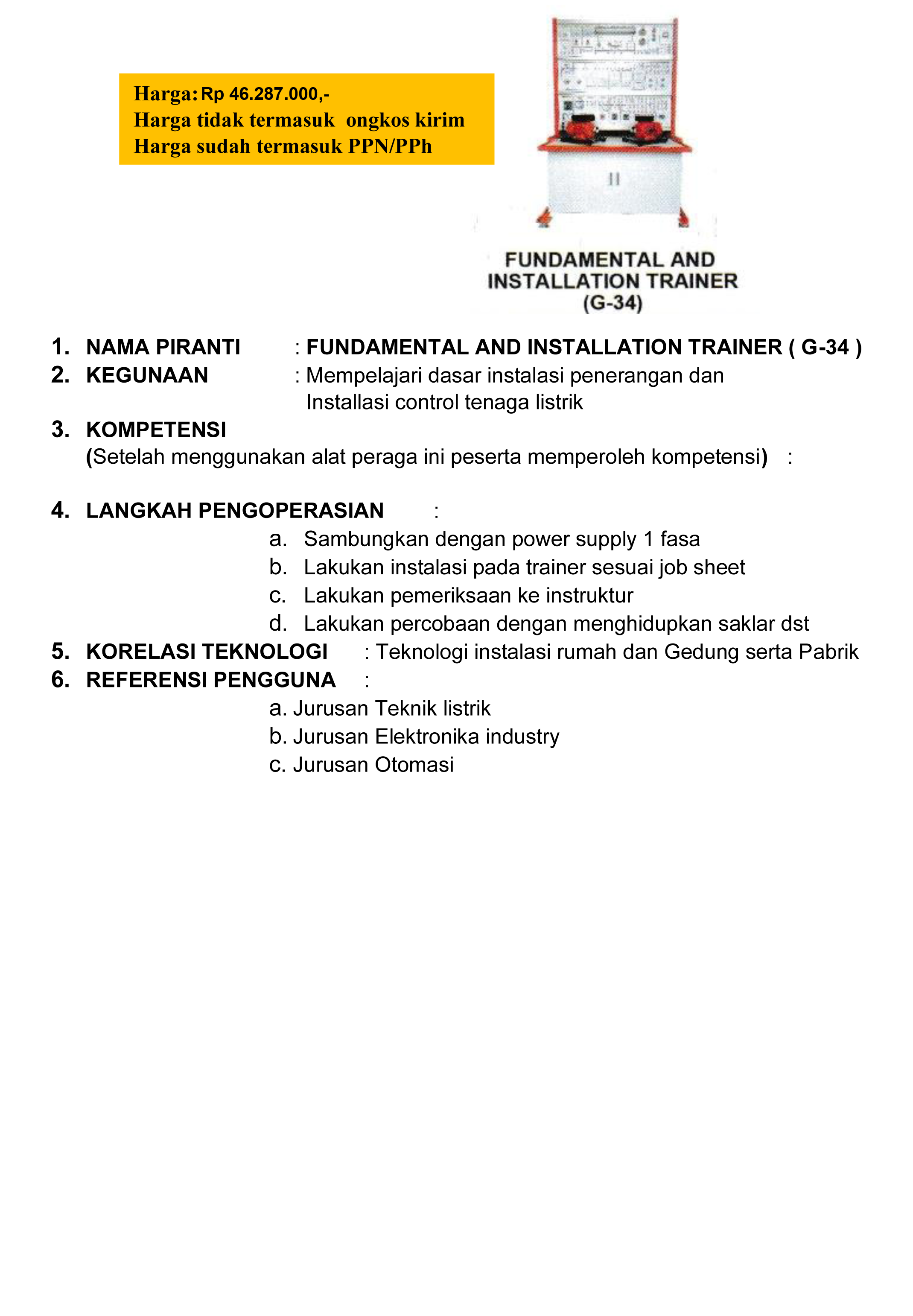 FUNDAMENTAL AND INSTALLATION TRAINER ( G-34 )